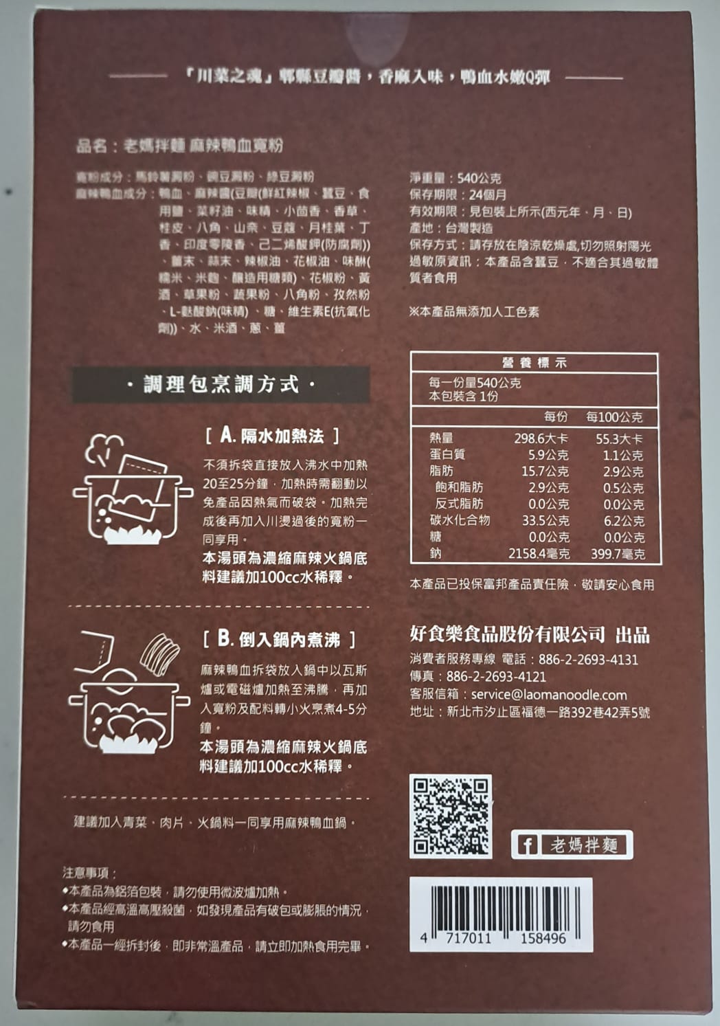老媽拌麵 麻辣鴨血寬粉(乾貨)